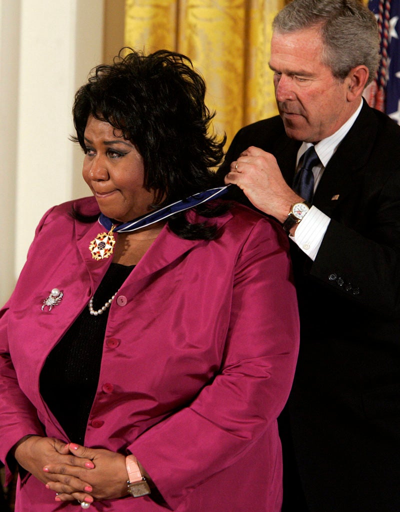 Aretha Franklin received a Medal of Freedom from then-President George W. Bush in Washington, D.C. on November 9, 2005.