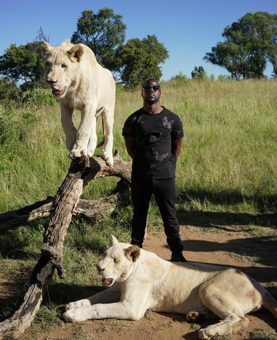 Kevin Hart is part of the pack as he hangs out with some lions in South Africa.