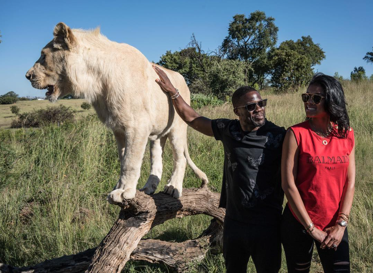 Kevin Hart gets up close and personal with a lion in South Africa.