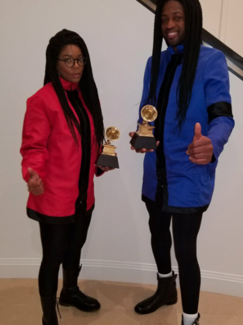 The couple dressed as infamous 90s R&b duo Milli Vanilli–complete with their Grammy awards, bright colored suits and a dance routine.