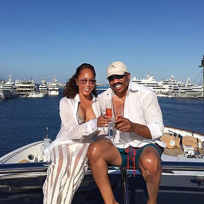 Whether they’re toasting champagne on a yacht in the middle of paradise or gallivanting across the globe hand-in-hand, comedian, author and talk show host Steve Harvey and his beautiful wife Marjorie Harvey are truly living their best lives day after day. Is it just us, or is every single moment that they spend together like something right out of a fairytale? We rounded up their most aww-worthy moments and they don’t disappoint. Ladies and gentleman, this is what being madly in love looks like!