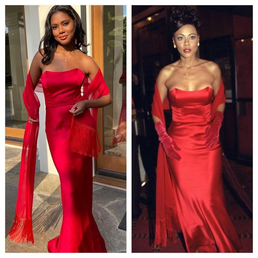 Asia showed up to her senior prom wearing a gorgeous red strapless evening gown from her mom’s private collection. Rochon shared sweet family photos from the special occasion on Instagram and fans had to a do a double take. Asia, whose dad is famous director Antoine Fuqua, and her famous mom are twins, and when she slipped into the gown, she looked just like her mom did when she wore it back in the day. “Yes, I saved the dress,” wrote Rochon in her caption. “Wasn’t sure why but now I know. #vintage”
