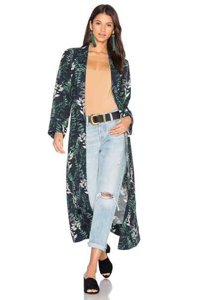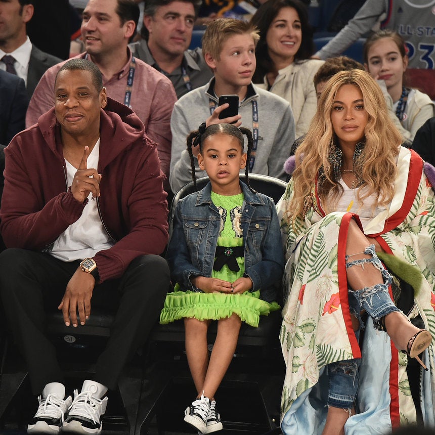 The singer stepped out with Blue Ivy and Jay Z during All-Star weekend looking radiant while rocking distressed jeans, a white t-shirt and the kimono of all kimonos.