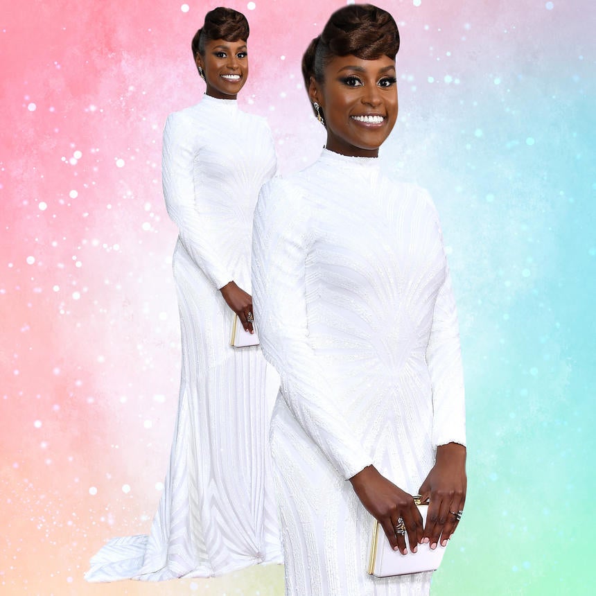 Nominated for Best Actress in Musical or Comedy TV series for Insecure, Issa was on hand decked out in a beaded all-white Christian Siriano gown paired with a white clutch purse and dangling earrings.