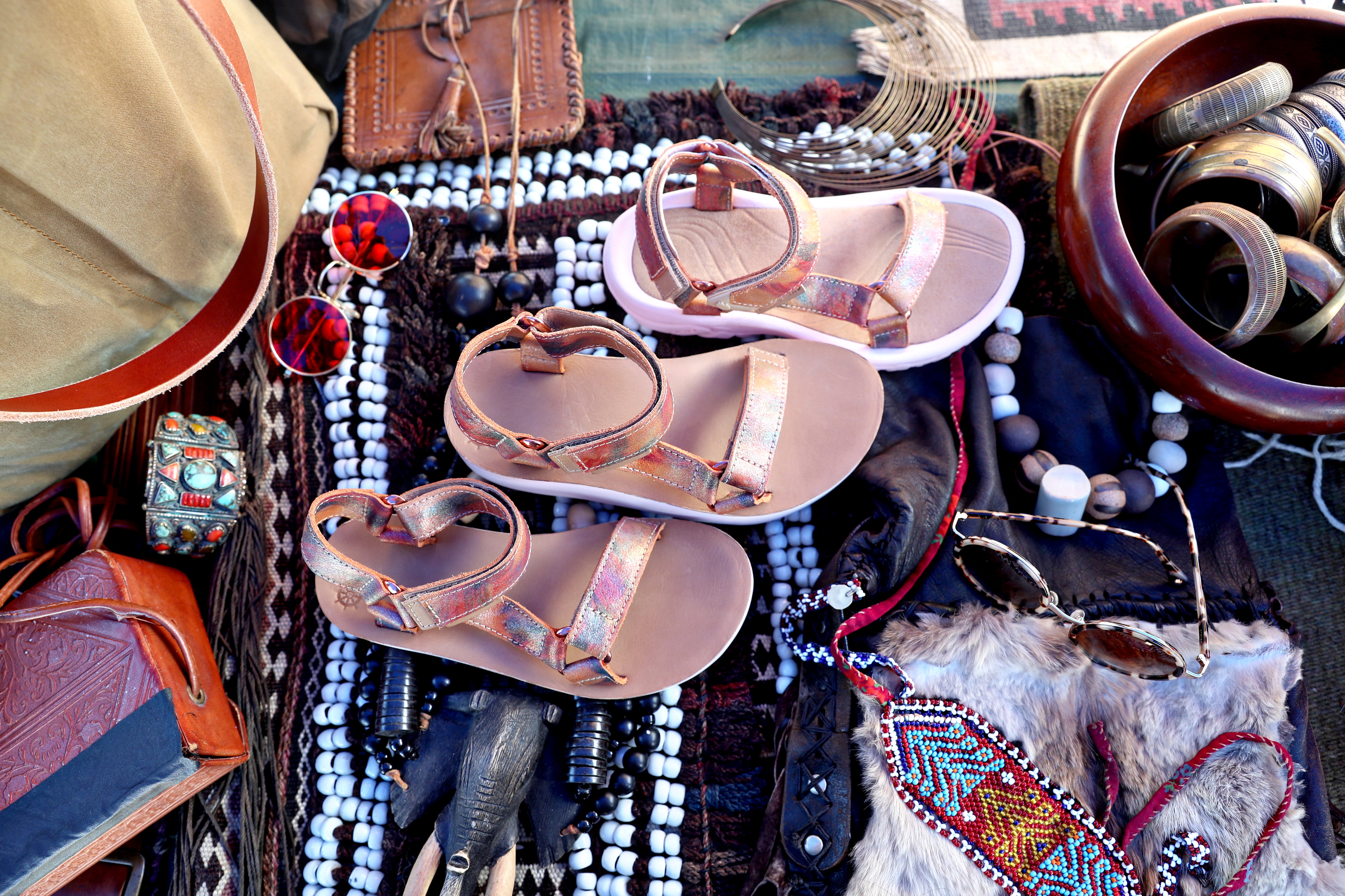 On Adding Her Personal Touch to the Collection: “I personalized [the shoes] with my dharma wheel tattoo which has a lot of meaning. Mainly it’s about being headed in the right direction, so it’s on the right sandal.”