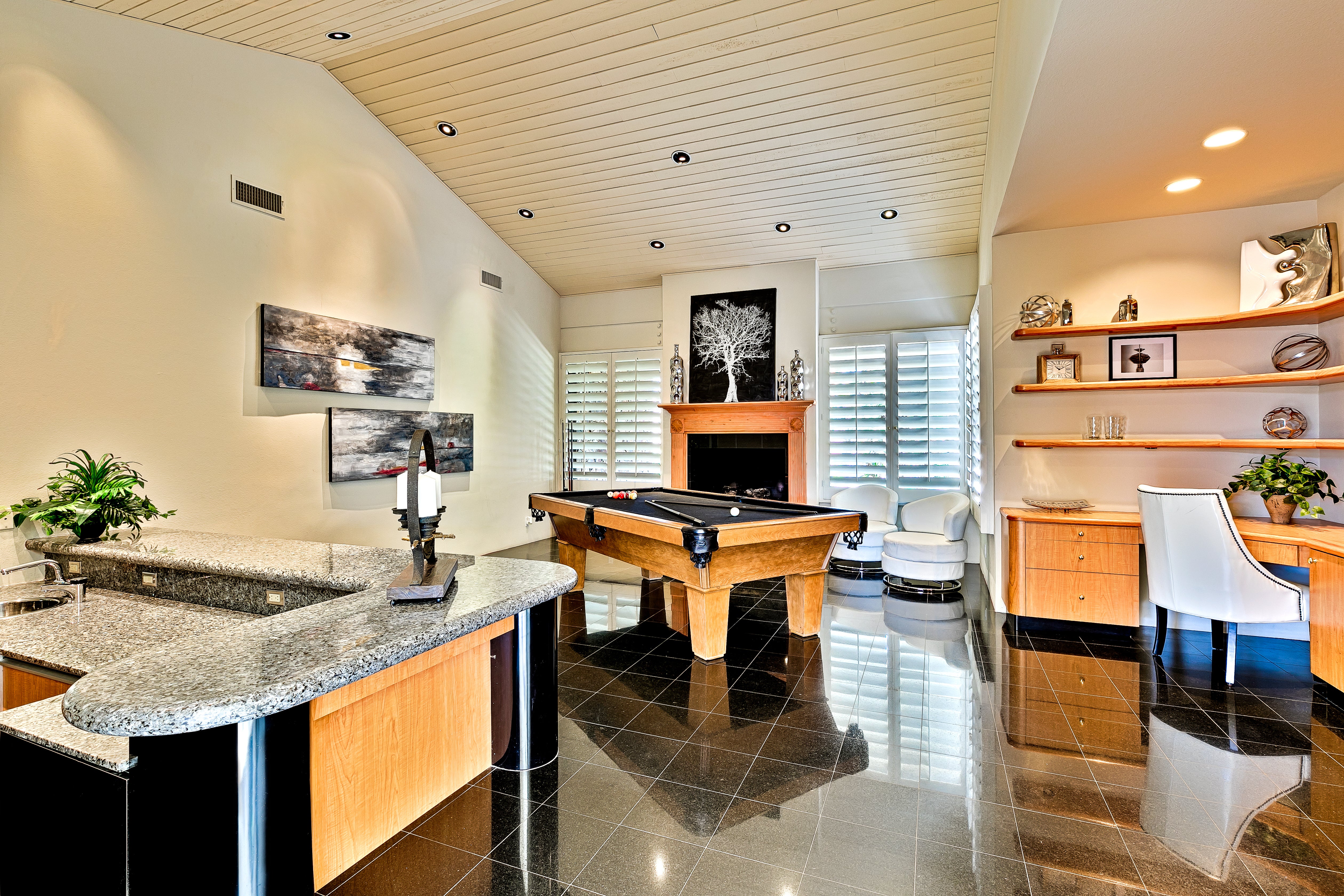 Upgrade your down time by relaxing in this space that’s complete with a pool table and a bar.