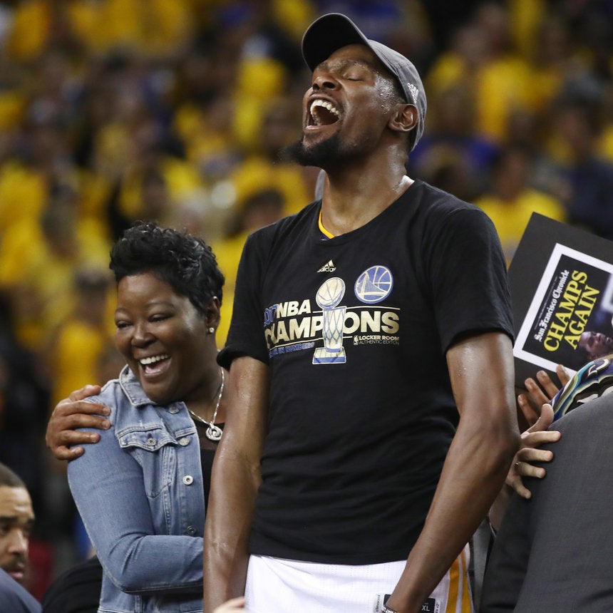 On Monday, Durant and his teammates secured the championship title for the 2016-2017 NBA season and the Maryland native was named Finals MVP. As confetti fell upon him, the 28-year-old reached for his mother’s embrace and once again on the center stage she became the most valuable mother, cheerleader and supporter.