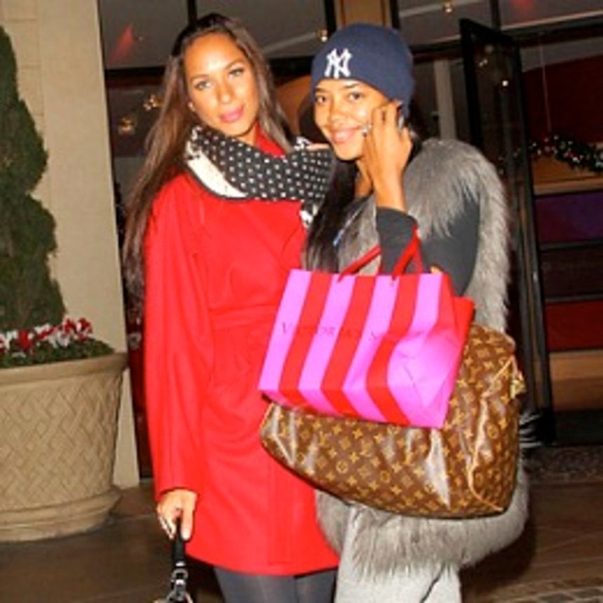 Leona Lewis and Angela Simmons looked casual and chic when they got together for a little holiday shopping in Los Angeles. It looks like Angie picked up a little something from Victoria's Secret. We wonder if it's naughty or nice.