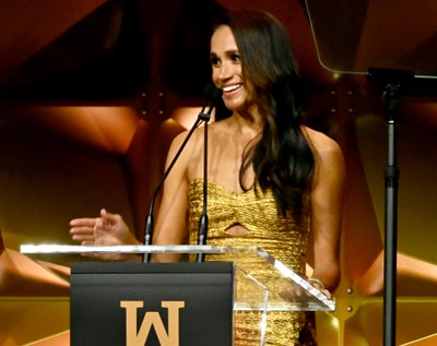 Markle, wearing a gold dress with daring cutouts that flouted royal protocol, began her speech by thanking journalist/activist and founding president of the foundation Gloria Steinem for her “sage advice” and “cheeky sense of humor.” She went on to recall flipping through the pages of Ms. magazine in her Cloverdale home as a child.