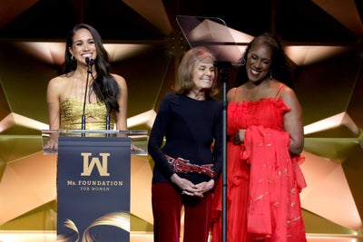 “Having these pages in our home, it signaled to me that there was just so much more than the dolled-up covers and the images that you would see on the grocery store covers. It signaled to me that substance mattered,” Markle continued. Steinem and President and CEO of the Ms. Foundation Teresa C. Younger beamed at her as she spoke.