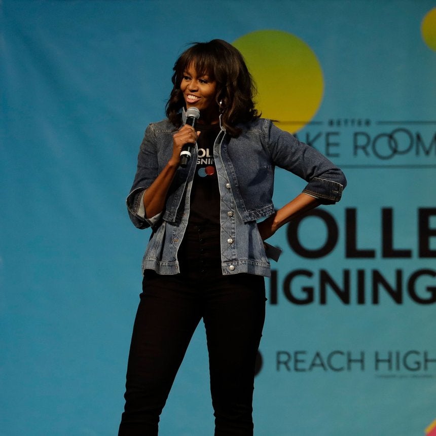 “There are all these people out there telling you what you can’t do,” Obama told the cheering crowd. “I am so proud of you all. You did just what I did. You ignored the haters.”