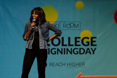 Beyond her dance skills, though, Mrs. Obama also took the mic while she was on stage to inspire the college-goers with a few words of wisdom.