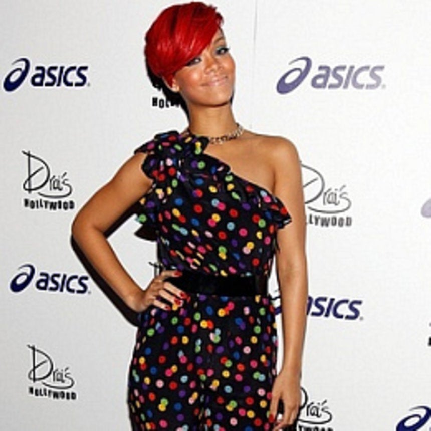 Rihanna rocked a cute and colorful polka dot one-shoulder romper last night at the afterparty of her Los Angeles performance at the Staples Center. Paired with her red hot hair, this lady is living testament that true fashionistas should never shy away from colors.