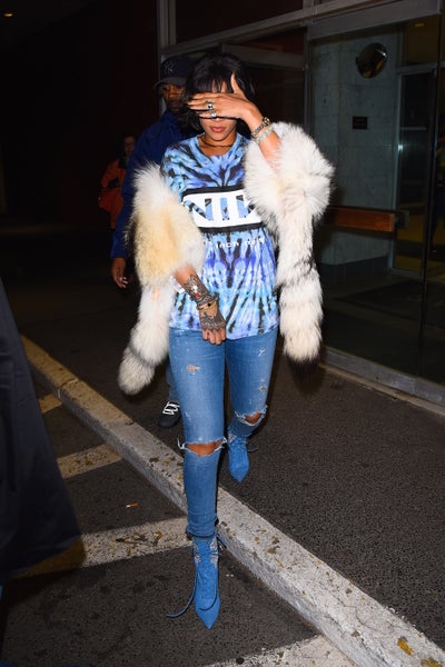 Rih just might be the queen of meshing luxe and casual pieces to make one fab look.