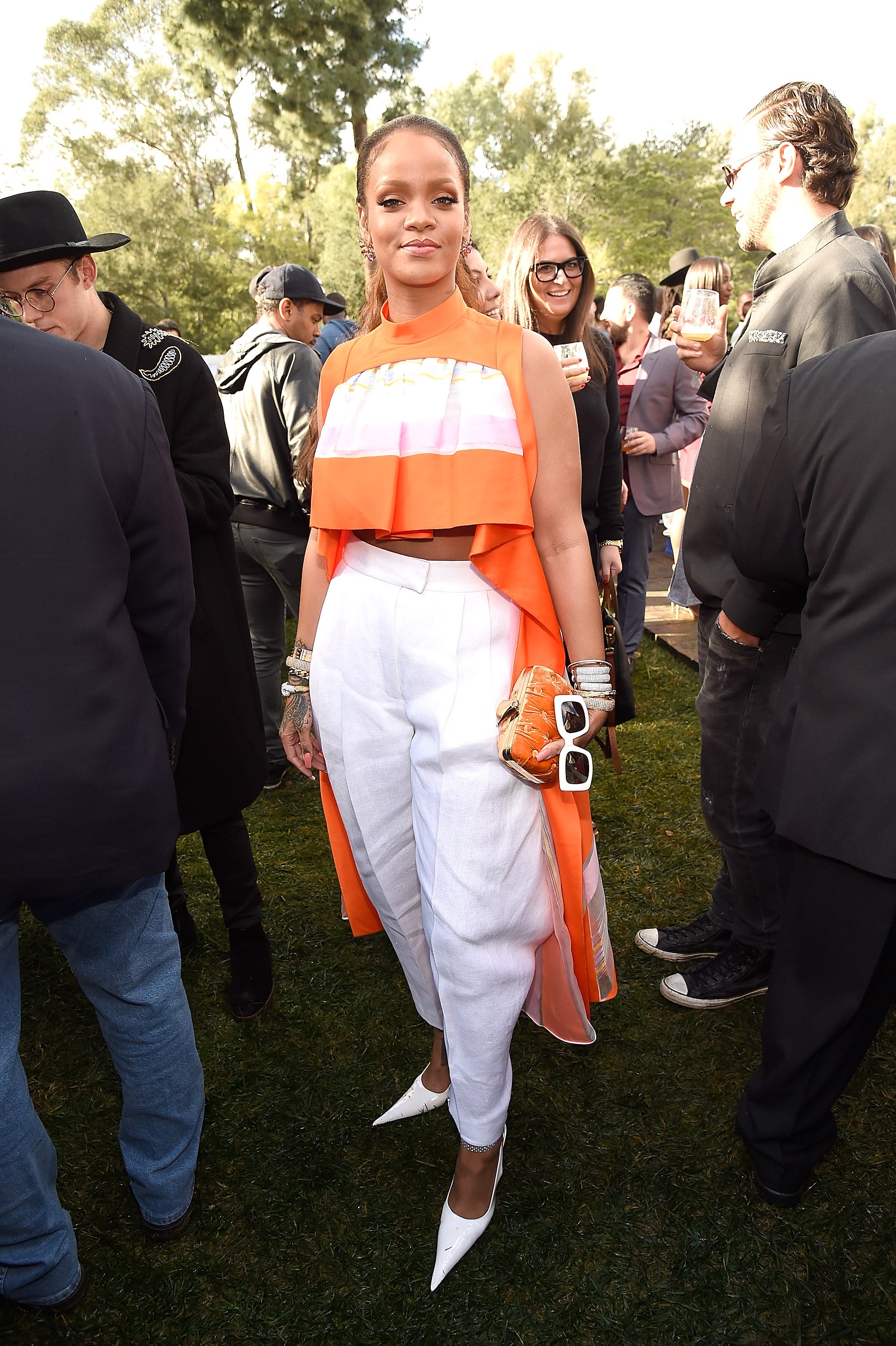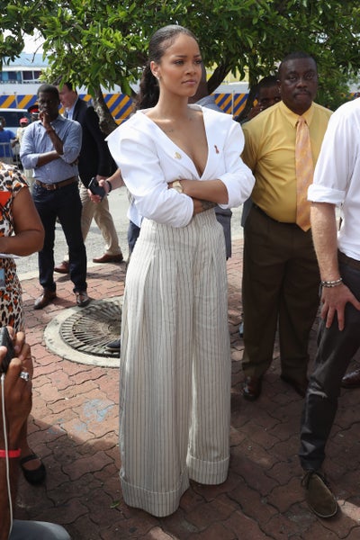 Rihanna may not look too happy in this picture but do you see those pants?! Rih slayed while giving back in this drop-dead gorgeous ensemble.