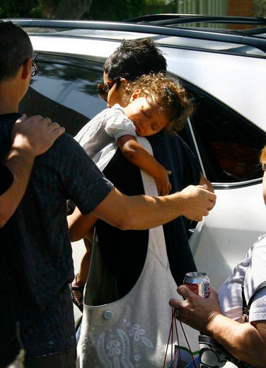 Chris Brown takes a break while completing his hard labor sentence by doing community service in Richmond, Virginia, on September 17.