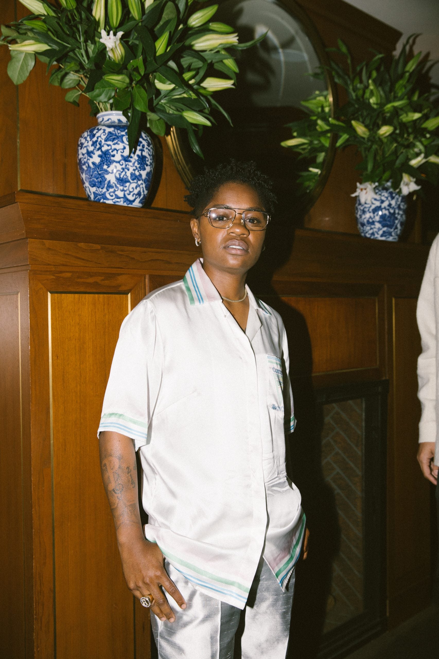 The rapper and All-American actress was fly in a head-to-toe Casablanca look at the brand’s private dinner event in LA.