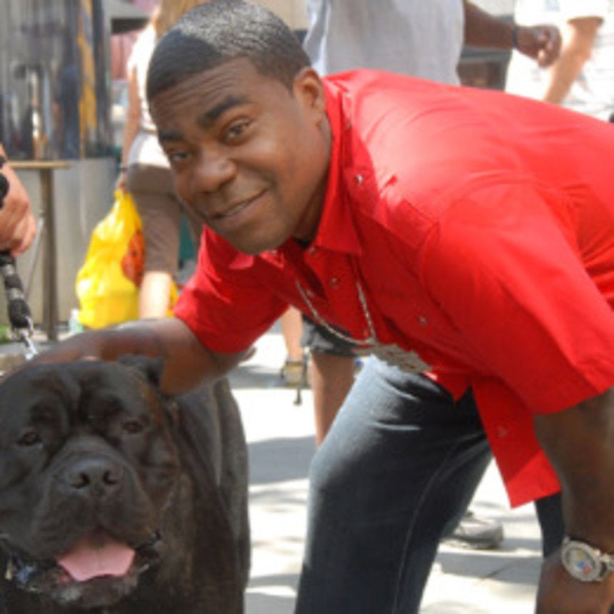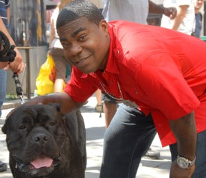 One of our favorite comedians, Tracy Morgan, brought along his beloved dog, Max, to the set of "30 Rock." We wonder if he ever brings his pet python, piranhas and tiger eels on location.