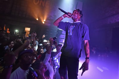 Travis Scott performs onstage during the NBA 2K19 launch event at Greenpoint Terminal in New York City.