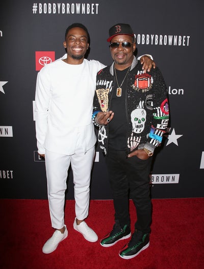 Woody McClain and Bobby Brown attend the premiere screening of “The Bobby Brown Story” presented by BET and Toyota at the Paramount Theatre in Hollywood, California.