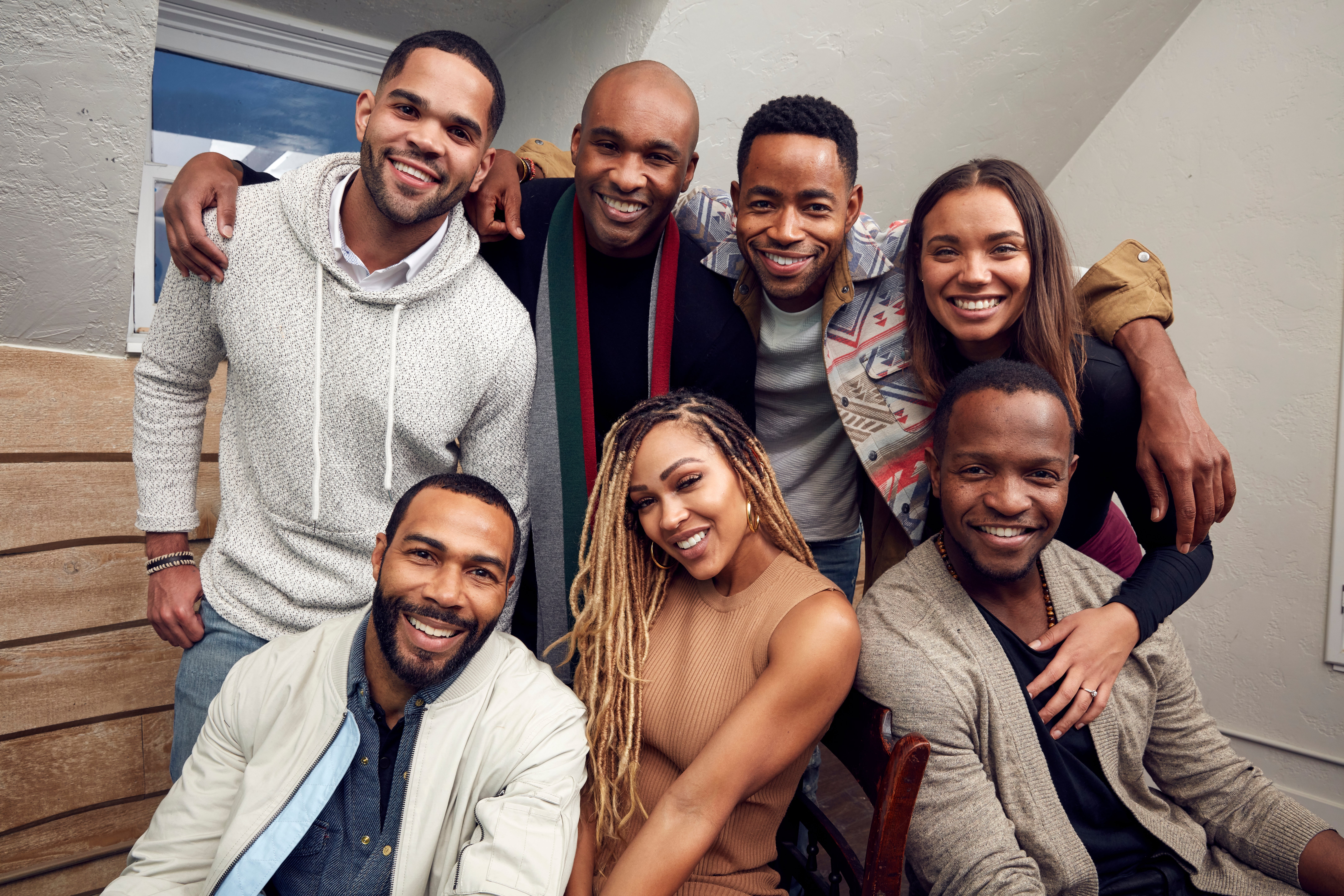 Dijon Talton, Omari Hardwick, Datari Turner, Meagan Good, Jay Ellis, Samantha Tanner, and Qasim Basir from the film ‘A Boy. A Girl. A Dream: Love on Election Night’ pose for a portrait in the YouTube x Getty Images Portrait Studio at 2018 Sundance Film Festival in Park City, Utah.