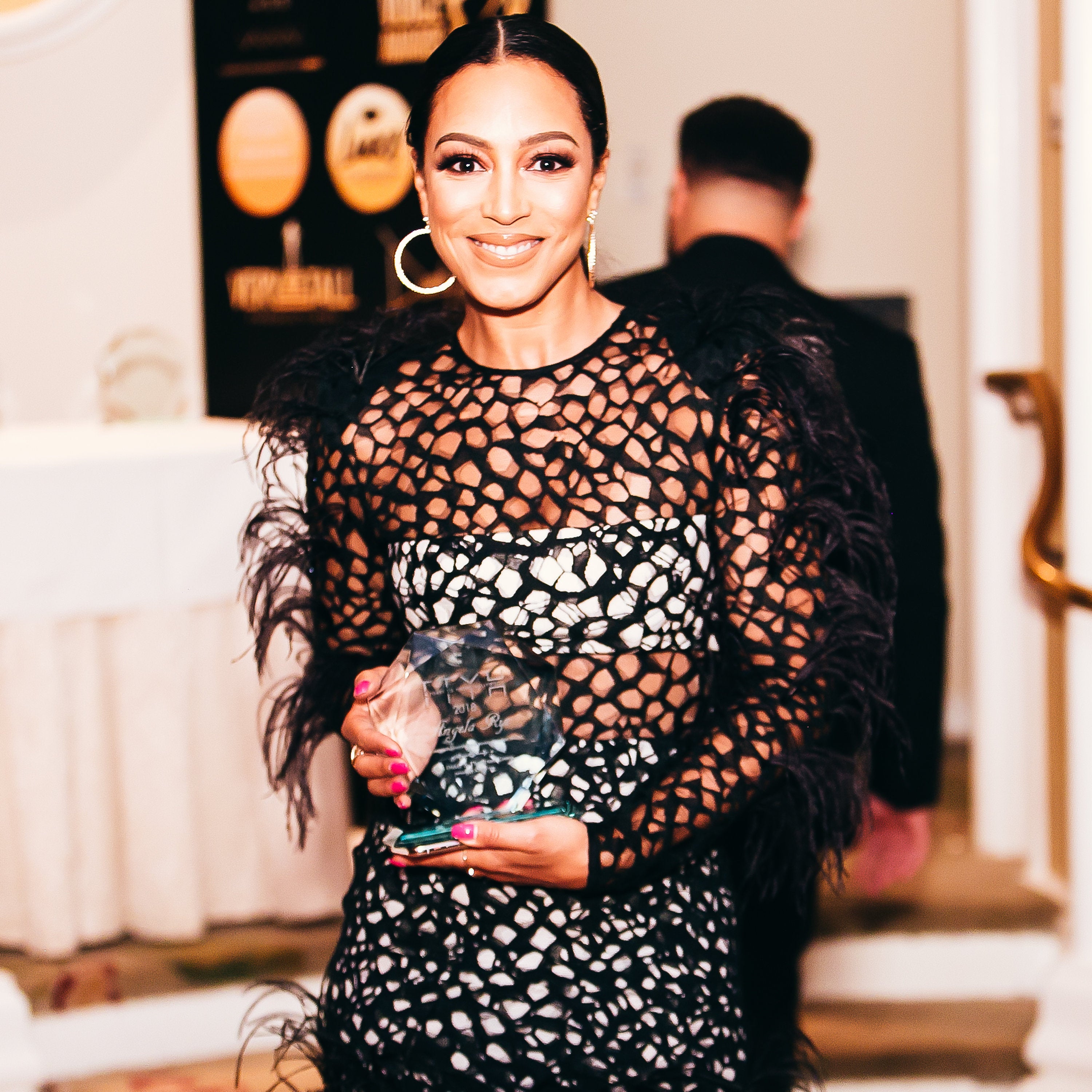 Angela Rye poses with her award at the 3rd Annual “Toast To Young Hollywood” event, sponsored by D’USSE, at the Beverly Hills Hotel in LA.