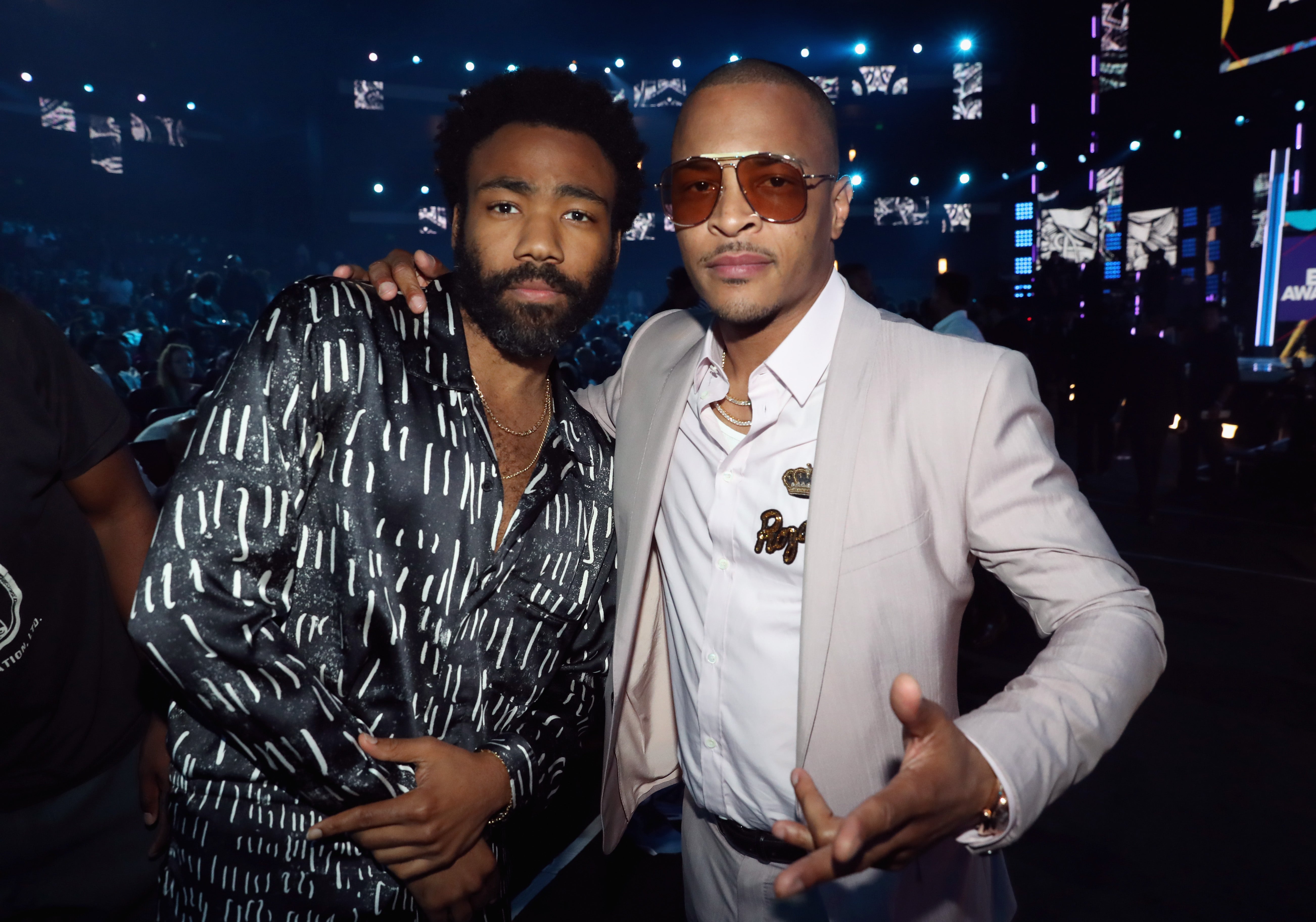 Donald Glover and T.I pose together a the 2018 BET Awards at Microsoft Theater in Los Angeles, California.