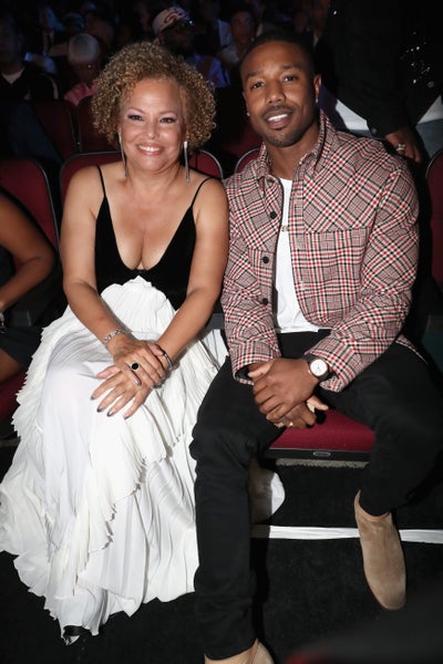 Debra L. Lee and Michael B. Jordan pose for the cameras at the 2018 BET Awards in Los Angeles, California.