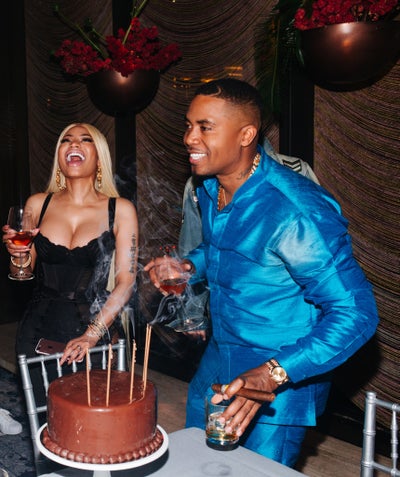 Nikki Minaj is full of laughter as she celebrates with Nas at his private birthday dinner, presented by Hennessy at The Pool Lounge in New York City.