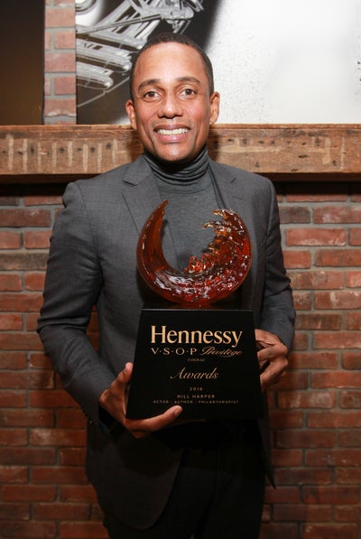 Hill Harper accepts the Hennessy V.S.O.P Privilège Award for his dedication to empowering the next generation of multicultural professionals on in New York City.