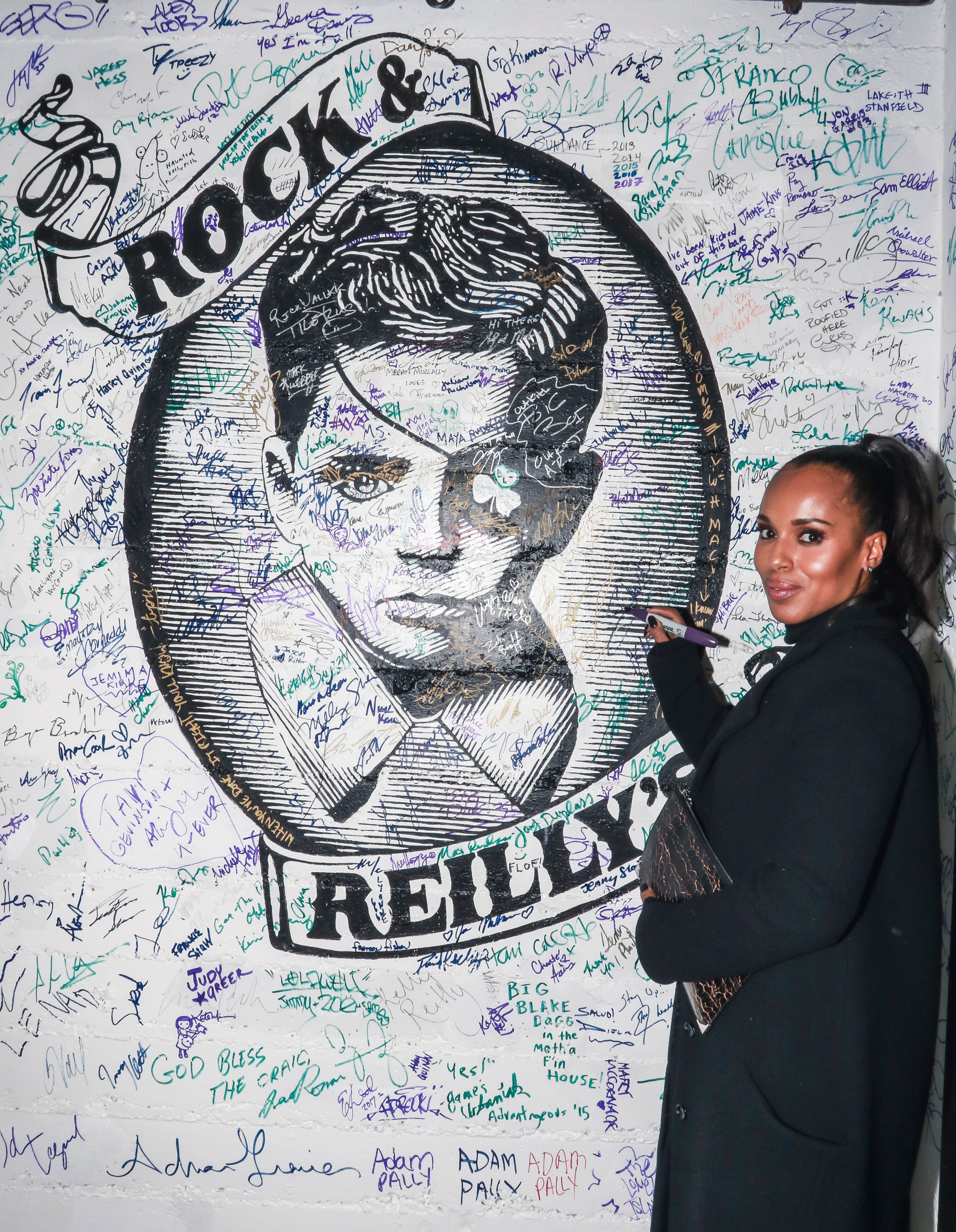 Kerry Washington strikes a pose while signing the wall at Rock & Reilly’s during the 2017 Sundance Film Festival.