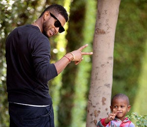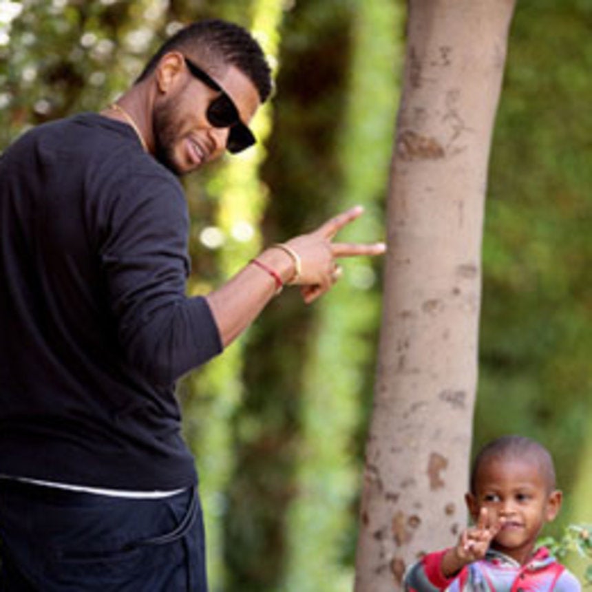 It's quite clear that Usher Raymond V has inherited his superstar dad's swagger. The two held up peace signs while spending the day together in Los Angeles. This is too cute!