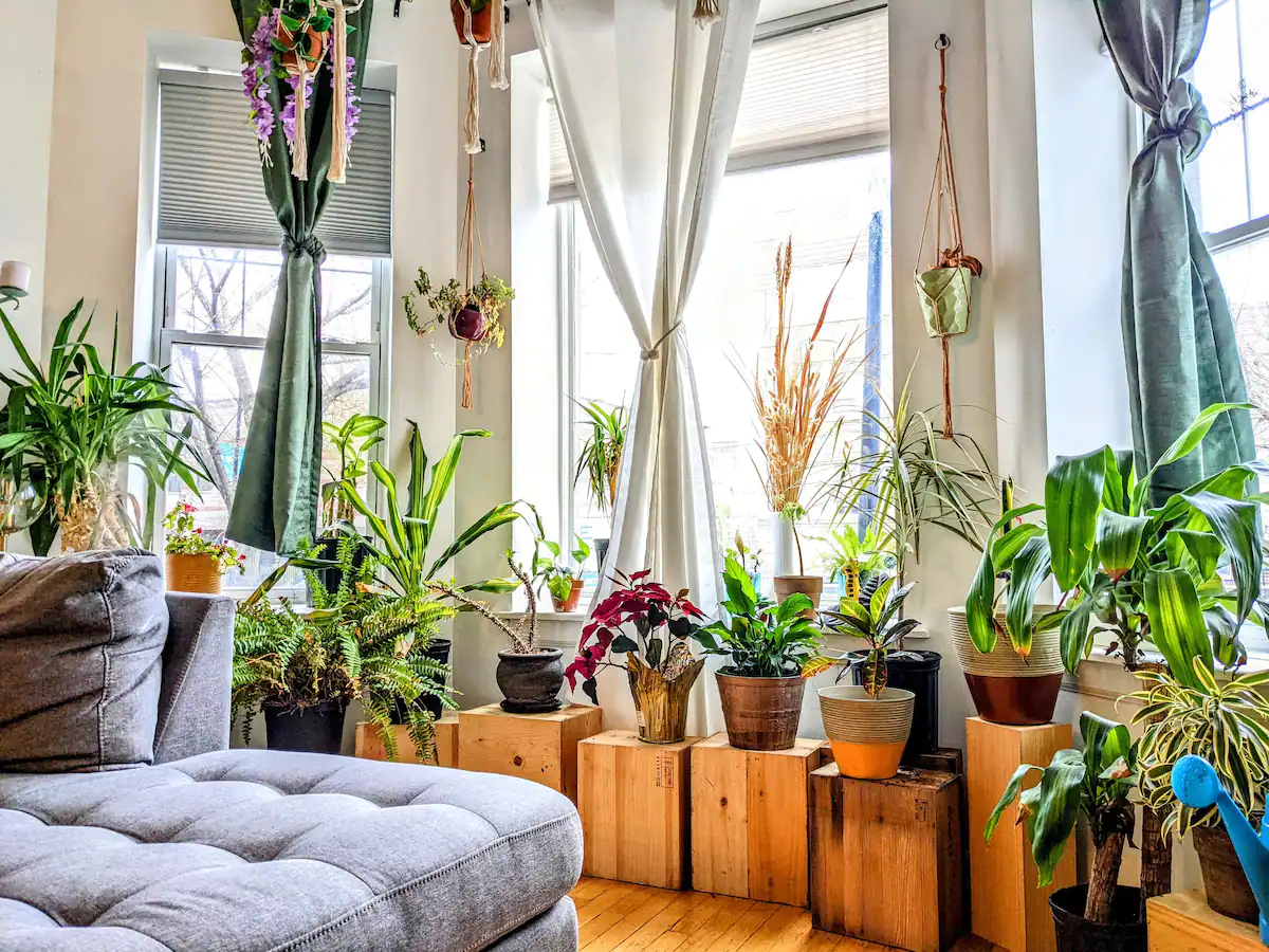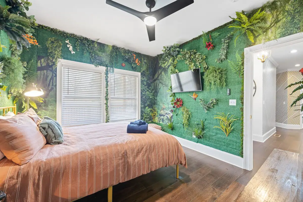 (Accommodates four guests – 2 beds/2ba)A plant oasis and vibrant duplex. Bohemian-inspired decor with intricate, colorful design details and vintage furnishings. Packed with real plants, this beautiful home exudes comfort. Why settle for IKEA furniture design?Available at
