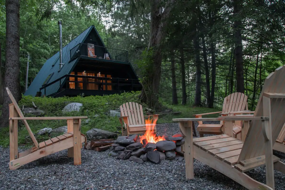 The Pine Hill Aframe curates a modern and intentionally designed A-frame retreat on 1.6 acres under the Belleayre Ski resort and 20 min. to Plattekill. Relax and enjoy solitude while experiencing the Catskills. Enjoy cozy nights by the wood-burning stove, screen time in the hidden nook, or roasting smores.Available at