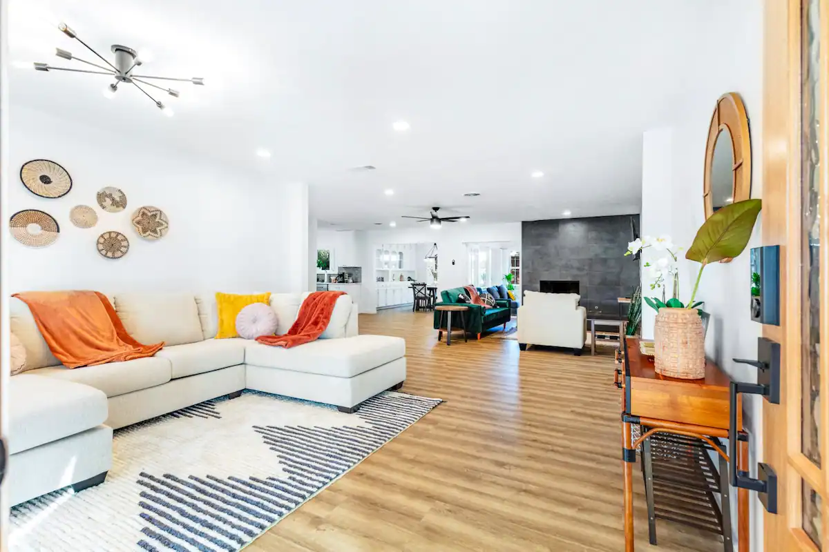 (Accommodates six guests – 3 bed/2 ba)Enjoy a newly renovated Boho modern 3BR house designed to make guests feel right at home. Perfectly situated in between Dallas & Fort Worth and is 15 minutes away from DFW Airport, Six Flags, and Cowboys Stadium!Available at