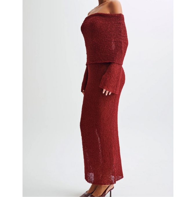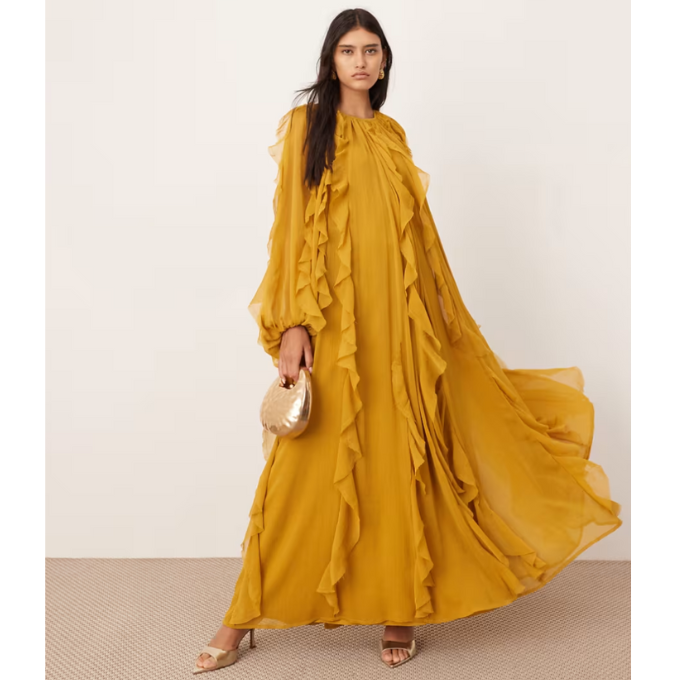 Another brand she swears by and is often spotted in is Fe Noel by the designer Felisha Noel. Steele has an affinity for the colorful hues and gradients utilized by Noel. “I have this beautiful red-orange and a yellow sheer dress from them that’s long-sleeved. And at the end of the sleeves are these humongous puffs. It’s just fun,” she said.