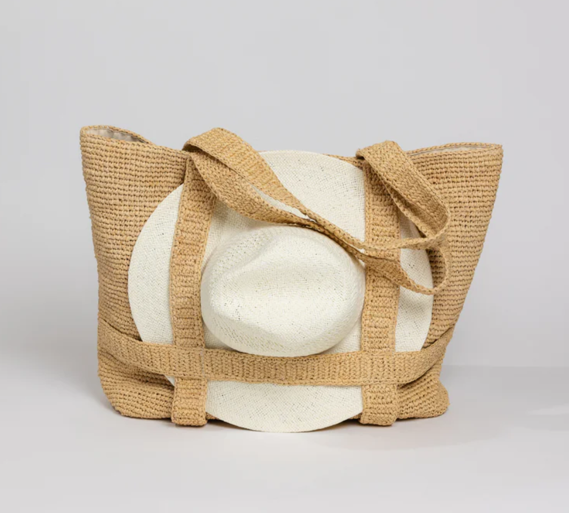 The Original Straw Traveler Bag, the perfect solution for safely carrying all your beach essentials. With its built-in spot for your favorite sunhat and plenty of room for sarongs, bathing suits, and sunscreen, you can keep everything organized and wrinkle-free.