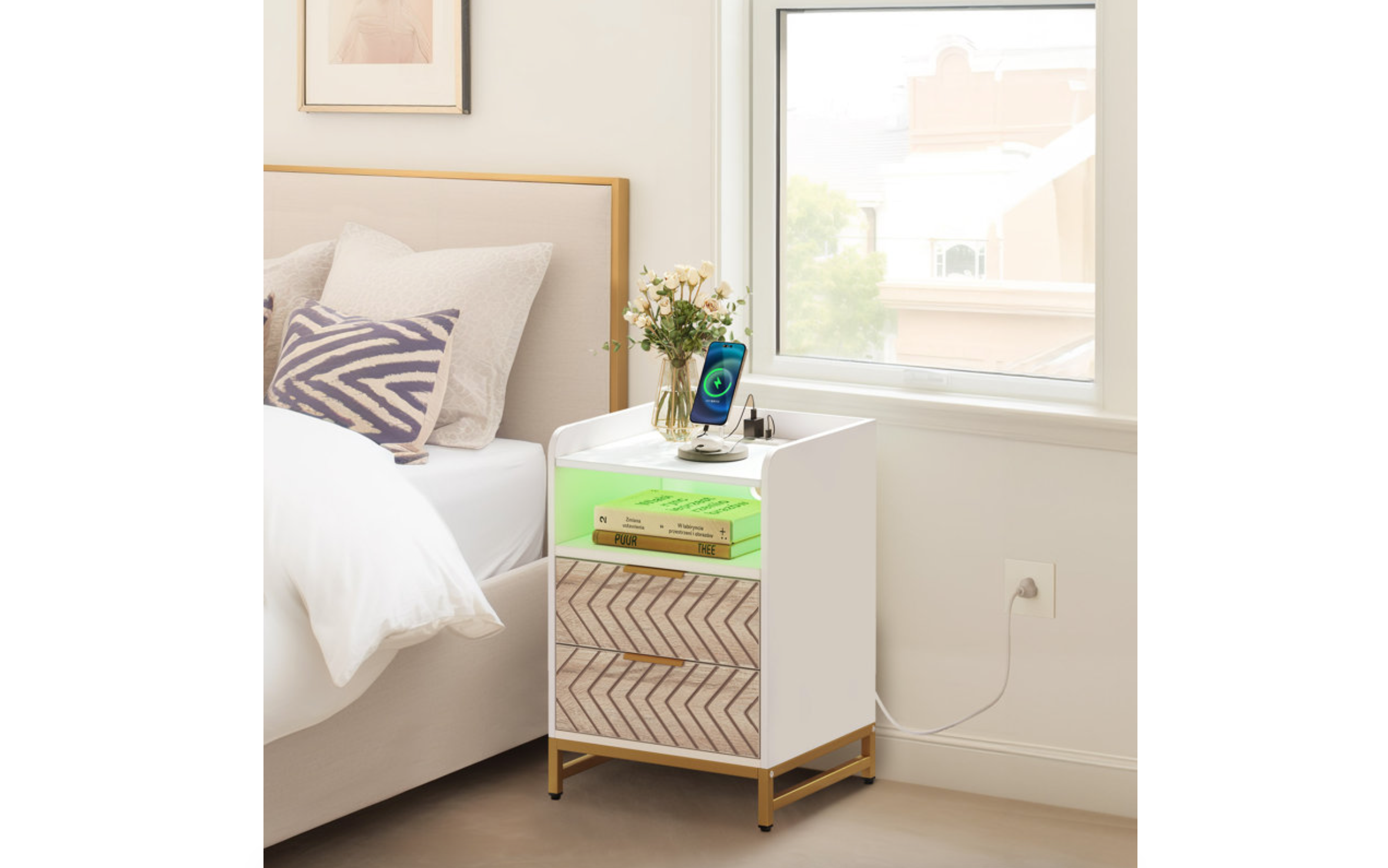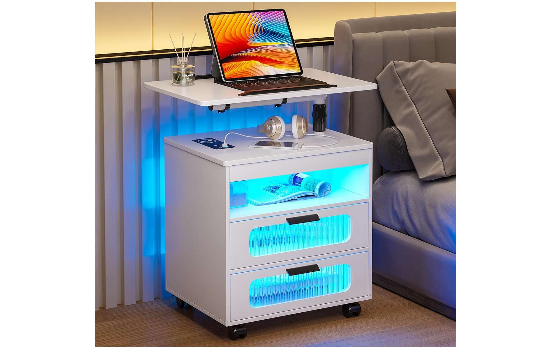 If you dread getting out of bed to plug in your electronic devices, consider investing in a charging nightstand. It’s a small piece of furniture that can significantly improve your bedside experience. Featuring built-in power outlets and USB ports, you can conveniently charge your devices without coming from underneath the cover. But that’s not all. They’re also ideal for organizing, as most come with additional storage space.
