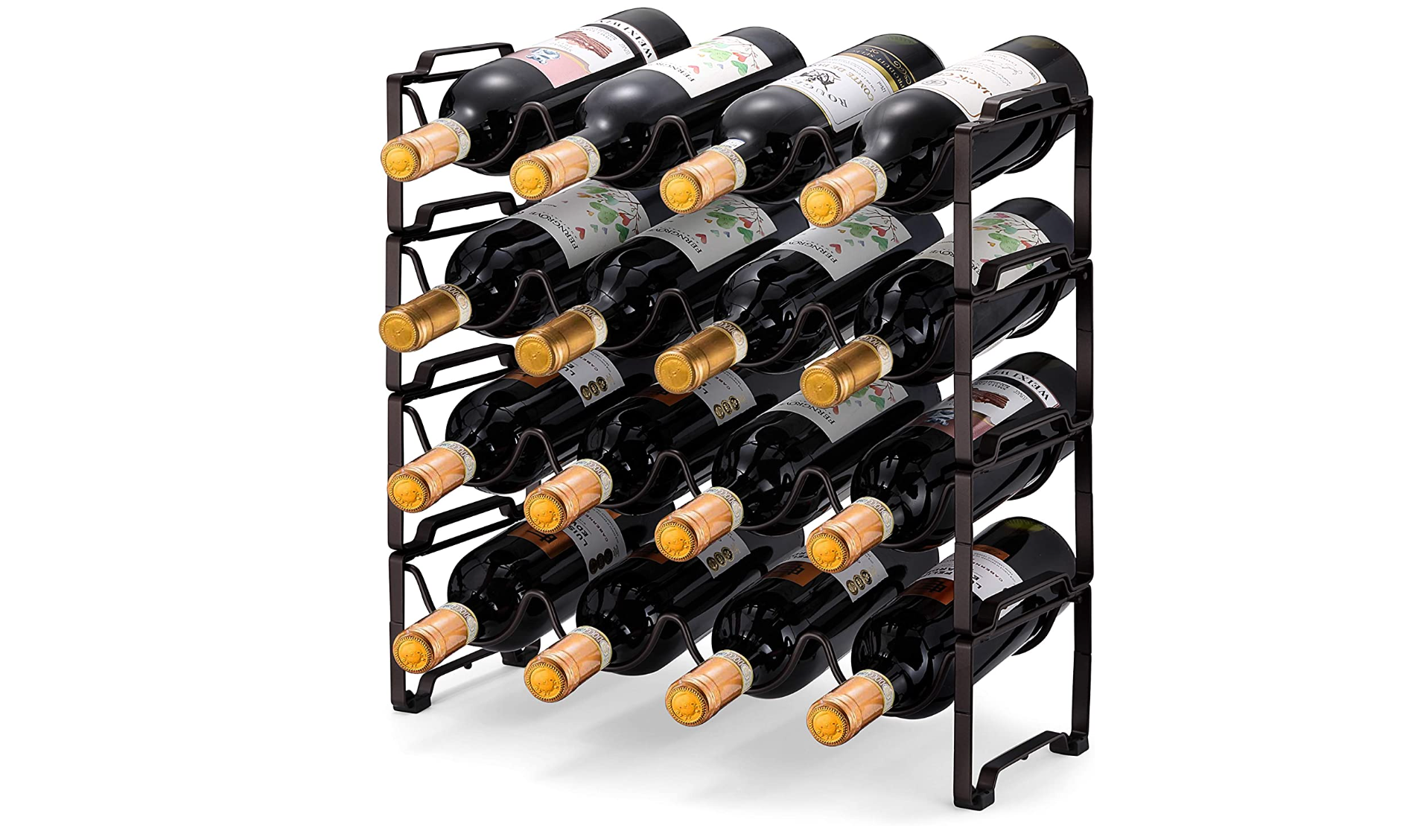 Whether it’s in your kitchen, pantry or bar area, Simple Trending’s 4-Tier Stackable Wine Rack will keep your vino stylishly organized and easily accessible.