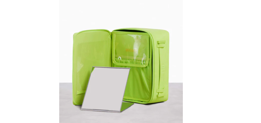 Why we love it: The interior features a removable brush holder with hidden magnets, slip pockets and a mirror for on-the-go touch-ups.
