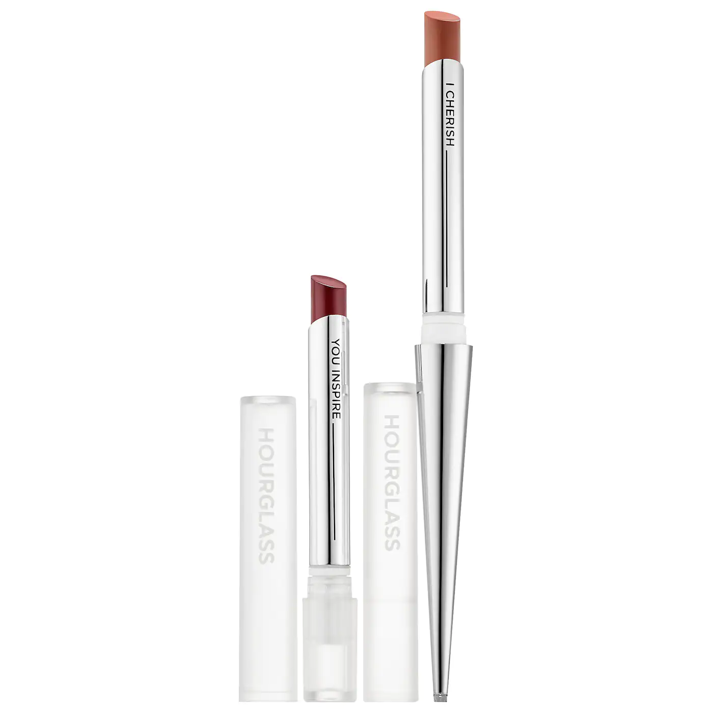 This lipstick duo features a slim, golden applicator that holds interchangeable refills, allowing you to switch up your lip color with ease. The formula glides on smoothly and provides a creamy, long-lasting finish, while the elegant packaging makes it a stylish accessory to show off in your beauty collection.