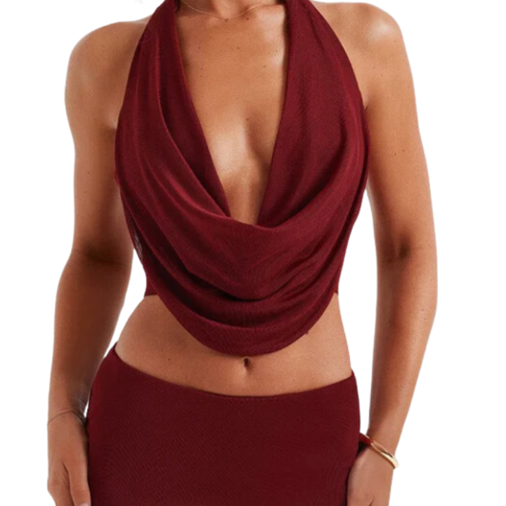 This burgundy cropped top has a similar energy to the one McGee wore on the night of the premiere.