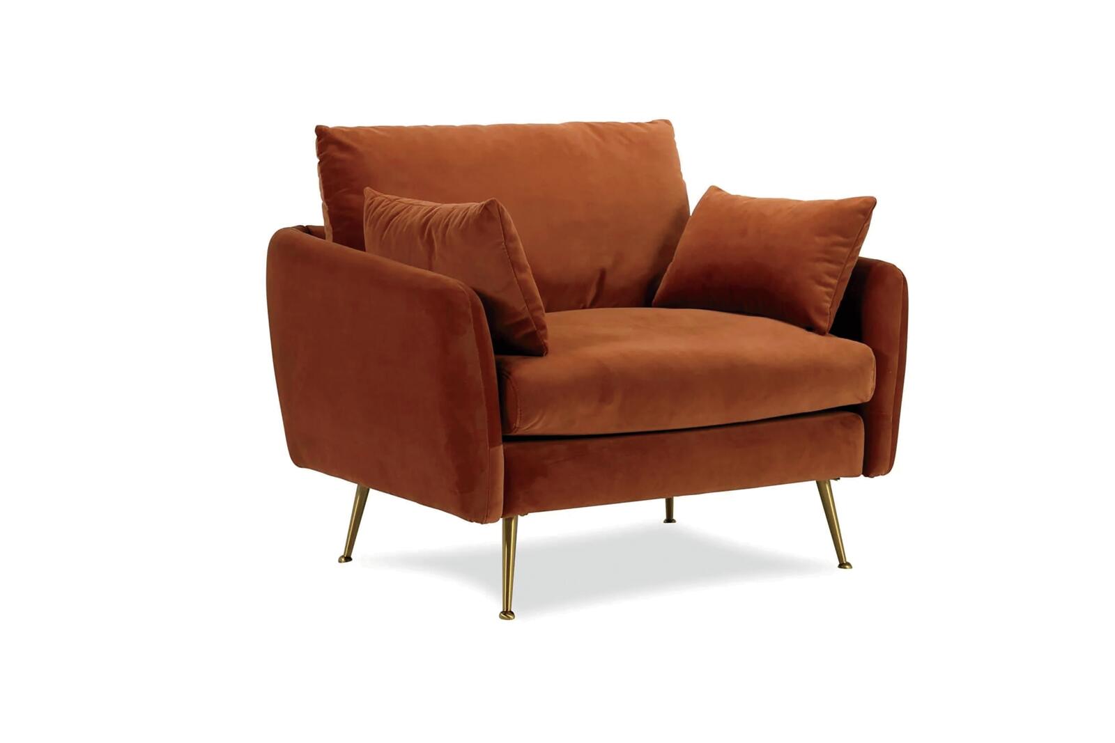 “Wrapped in plush rust velvet, this armchair brings irresistible warmth and richness to any room—like a love letter to luxe comfort,” states Penn. “Its deep seat and feather-topped cushions invite lingering, cozy conversations or curling up with a book and a glass of wine. With sculptural lines and a moody, sunset-inspired hue, it’s both a statement piece and a soft place to land.”
