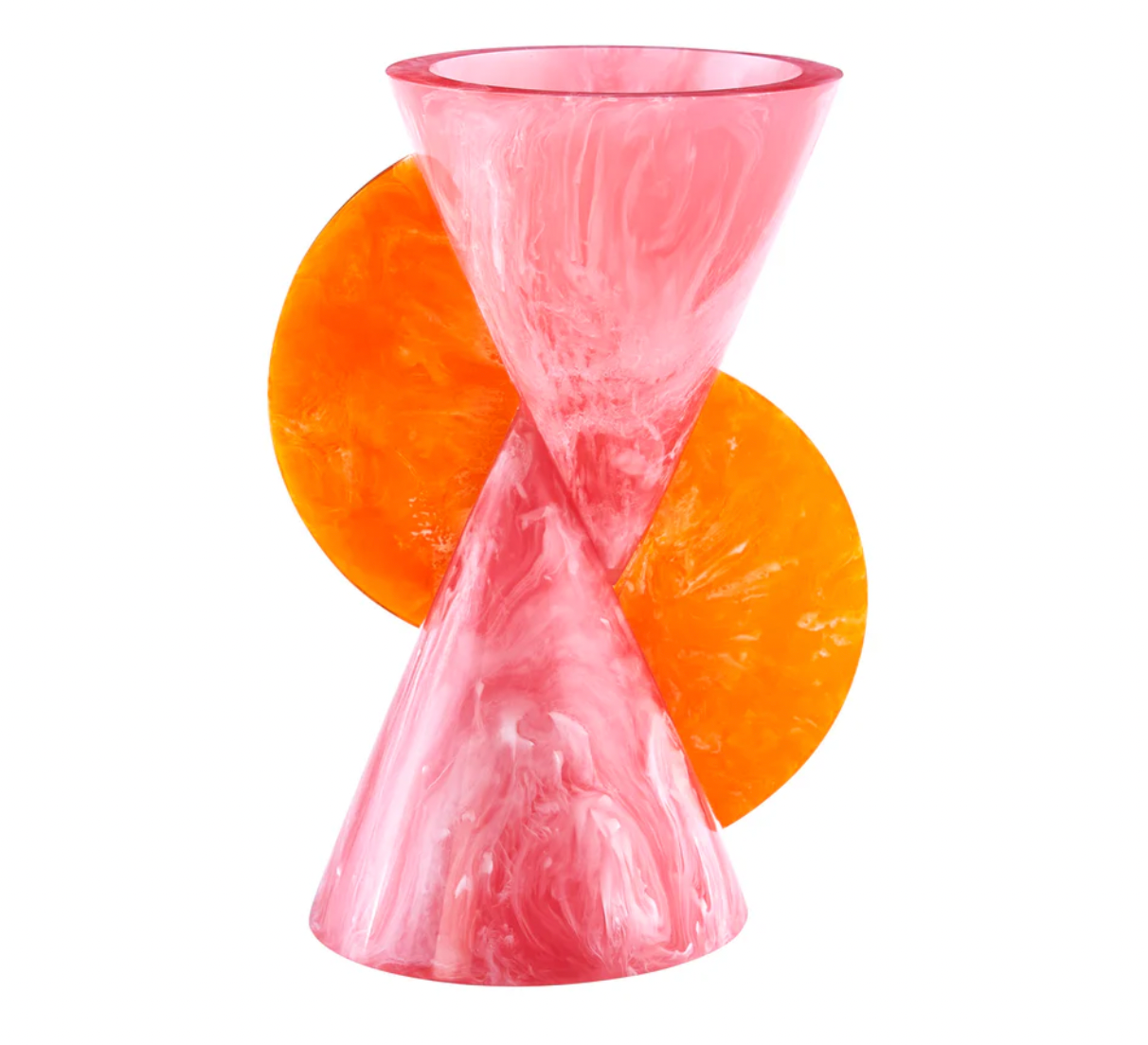 Jonathan Adler is known for bold design. His mesmerizing Mustique collection pairs juicy, dimensional colors with bold, Memphis-y geometrics. Each piece is polished to luminous perfection and hand-poured to create a unique marbleized finish, like this Mustique Cone Vase. Featuring swirling poppy tones, each Mustique vase brings a one-of-a-kind shine to any modern tablescape, or style them together to create a monumental moment.