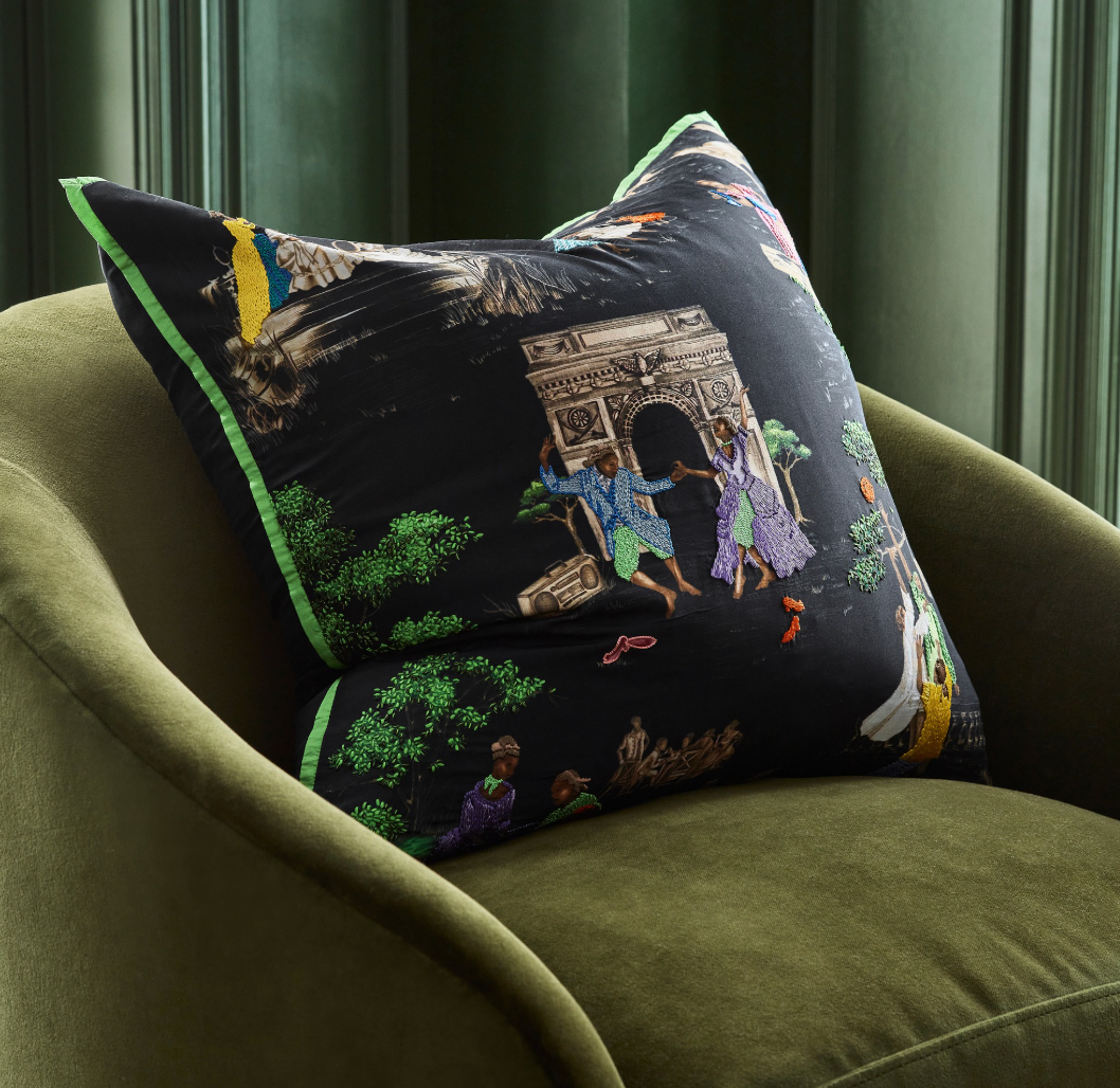 Hailed as “America’s Best Interior Designer,” Sheila Bridges’ vibrant style is everywhere, from presidential offices to elegant homes to world-renowned museums. Inspired by the New York neighborhood where she lives and works, Bridges’ famed Harlem Toile celebrates the rich heritage of African American culture. Add her signature style to your living room and couch with this lovely bespoke pillow cover.