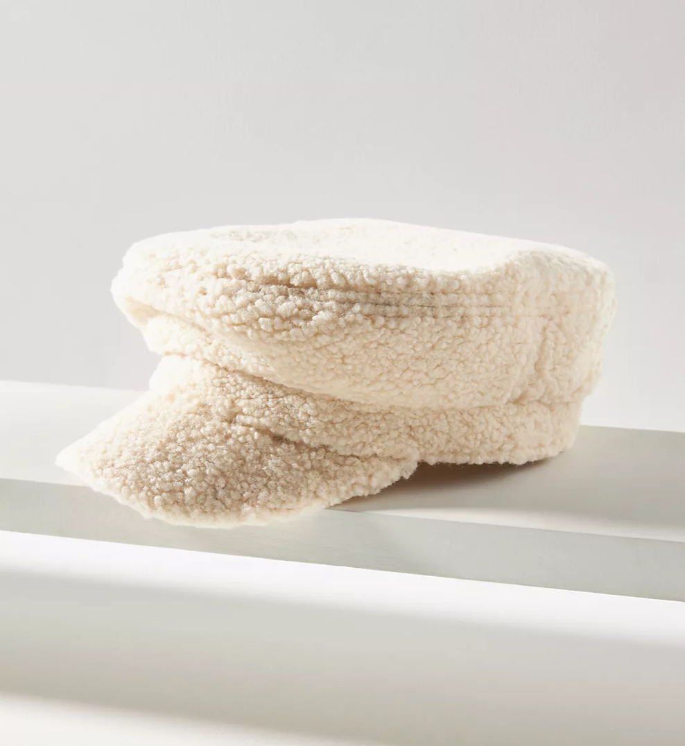 The Sherpa Newsboy Cap by Anthropologie is the pièce de résistance for your winter wardrobe. Not only will it help keep your head warm, but it will also serve as the perfect finish for all your cold weather outfits.