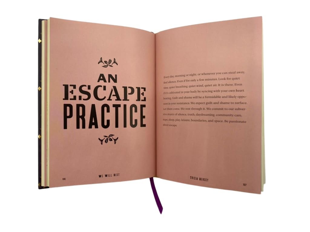 Since founding The Nap Ministry in 2016, Tricia Hersey has advocated for the necessity of Black women to let go of our need to always be “on” and to partake in the healing benefits of naps as adults. She recently released her second book, which she considers a modern sacred object, medicine for a sick and exhausted world. “There is another way. Focus on the escape. Focus on the transformation,” Hardy writes. “We can just be. We are beautiful. We are enough. We are escape artists. We Will Rest!”