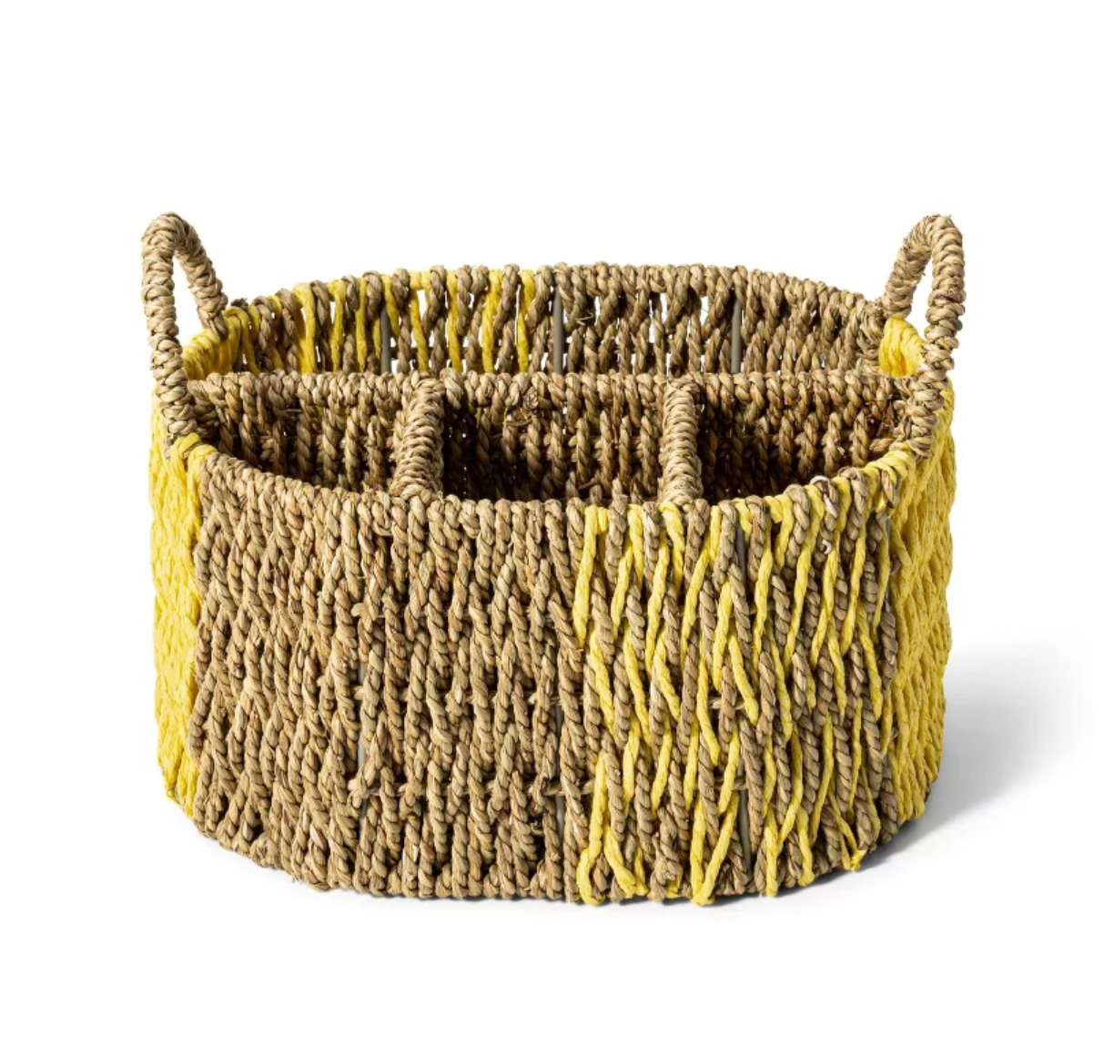 Style up your kitchen while adding functionality to it with this Utensil Caddy from Tabitha Brown for Target. Designed in an oval silhouette, this decorative utensil caddy features one large section to stash small plates and three smaller sections for storing knives, forks, or spoons. Plus, it’s designed with two side tote handles for easy carrying. Made from paper rope and seagrass, it brings natural flair to your kitchen decor. Available at
