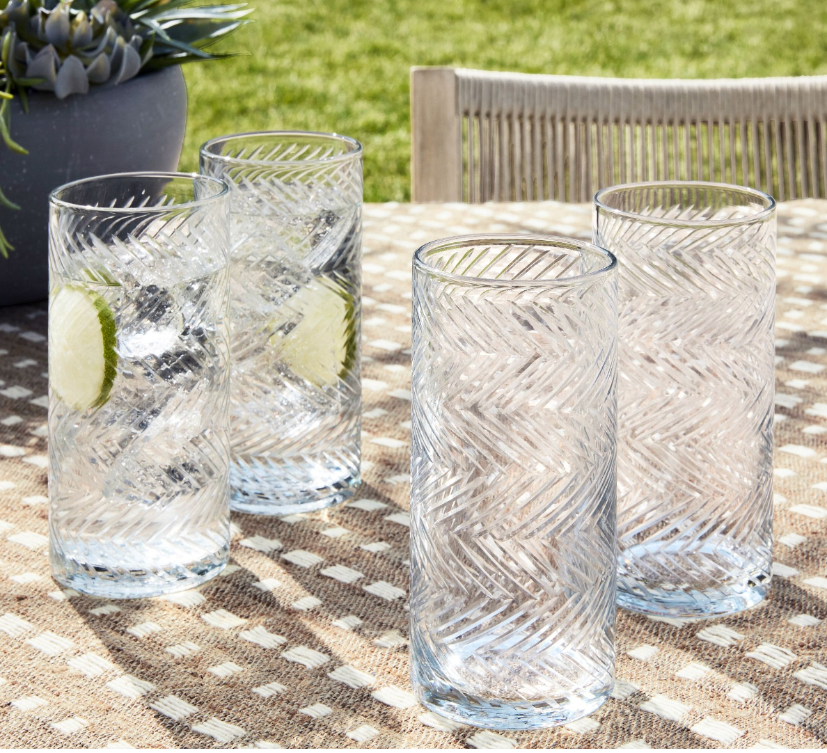 Sweet July Herringbone Handcrafted Glass Highball Drinking Glasses – Set of 4