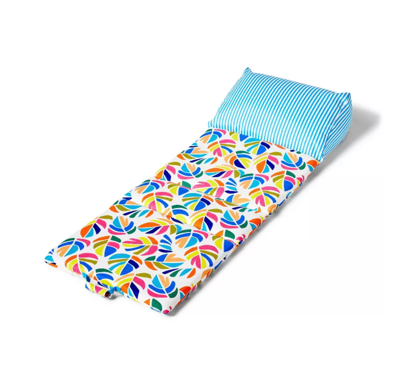 Stay comfy as you enjoy a sunny afternoon on this Outdoor Lounge Mat from Tabitha Brown for Target. Featuring bright leaves print and stripes for charming flair, the lounge mat is made from water-repellant material that will help keep it looking great for seasons to come. Plus, the top handles make it easy to carry the folded lounge mat around, and the large-size attached pillow is great for reading and sipping a drink.Available at